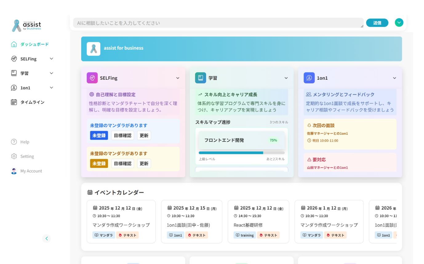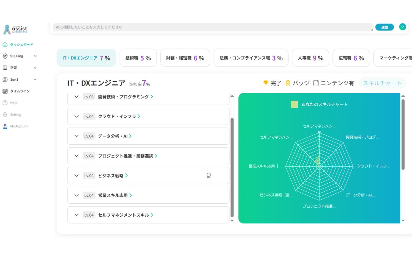 受講者(社員)は、AIが導き出す客観的なデータに基づき、自身の「なりたい」キャリアを明確にできます。管理者(人事)は、社員の学習進捗やスキル習得状況をデータで一元管理できるため、研修の企画・運営にかかる工数を大幅に削減できます。結果として、社員の成長と企業の成果を両立できます。